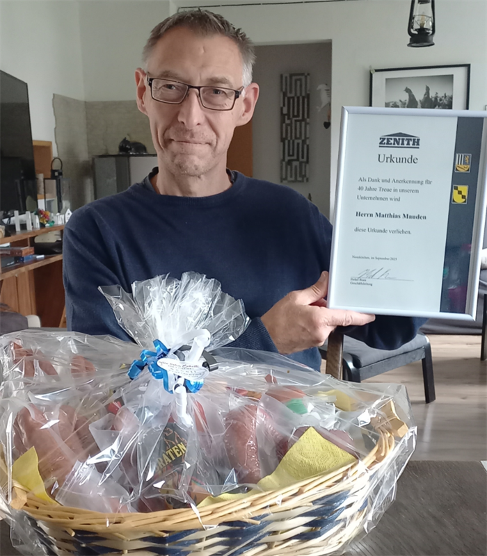 同樣迎來三十周年紀(jì)念的還有Mr.Markus Türk,現(xiàn)年47歲。他在策尼特完成了為期三年的工業(yè)文員培訓(xùn),現(xiàn)任備件銷售部門主管。多年來,他憑借扎實的業(yè)務(wù)能力與責(zé)任心,為全球客戶提供高效的售后支持,確保公司服務(wù)體系的高質(zhì)量運轉(zhuǎn)。